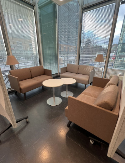 Möblierung eines Gemeinschaftsraumes zur Nutzung für verschiedene Anlässe wie Meetings und Events.